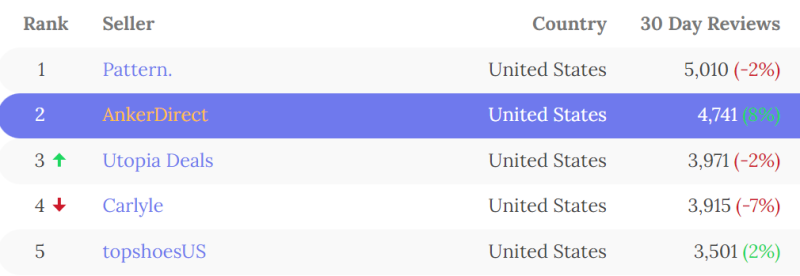 安克創新穩居美亞賣家榜第二 圖源:Marketplace Pulse?