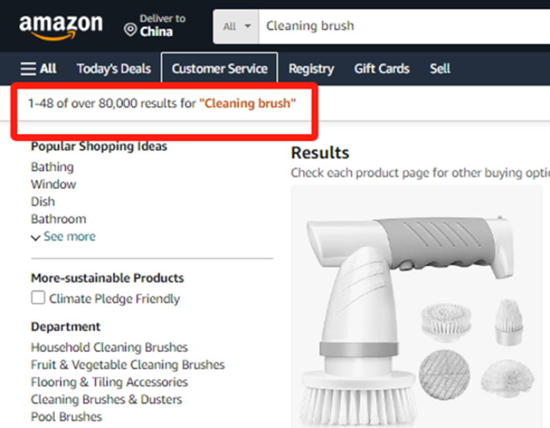 與清潔刷有關的Listing超過8萬條 圖源:亞馬遜