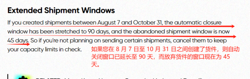 據悉,該巨頭目前已經延長了8月7日到10月31日期間倉庫發貨訂單的自動關閉和放棄發貨窗口的時間,前者被延長至90天,后者現在的窗口則為45天。如果賣家不打算發送這些貨件,就可以點擊取消以控制庫存容量。