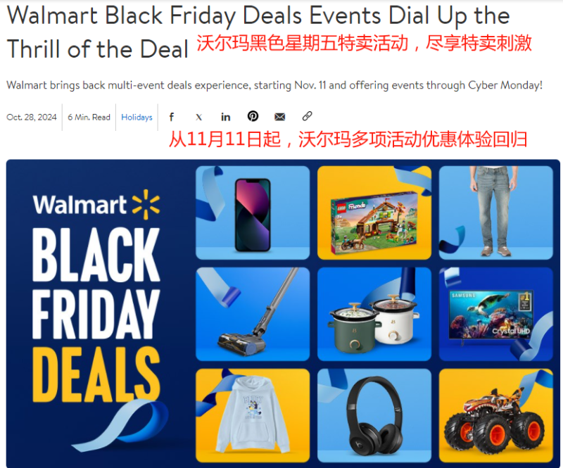 即將舉行黑五網一促銷活動 圖源:沃爾瑪