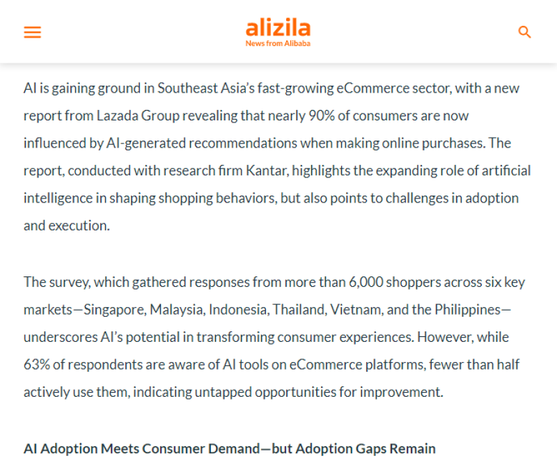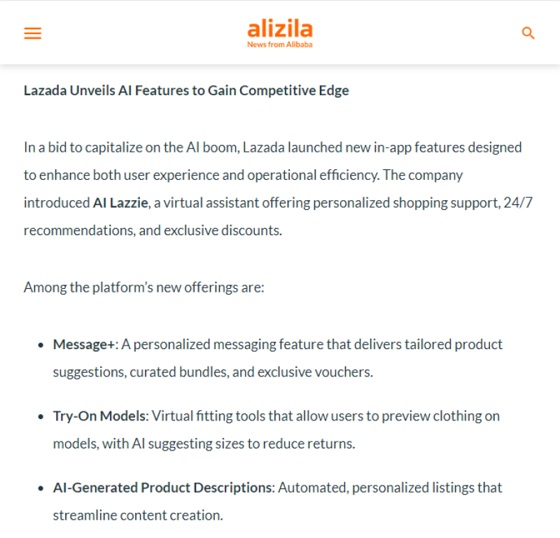 文章來源于互聯網:Lazada推出人工智能購物助手AI Lazzie