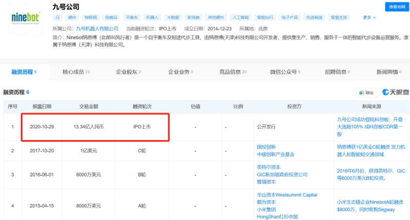 實際上,九號公司在2015年才逐漸將業(yè)務重心從國內市場轉向海外市場,但由于十分突出的突出,依舊讓它受到了資本市場的青睞,在2020年10月,九號公司成功在上海證券交易所科創(chuàng)板正式上市