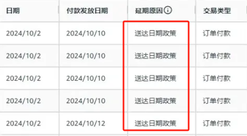 近日,不少賣家飽受延遲付款的折磨,“10月4日的訂單,要12月13日才放款。”有賣家如是說。在賣家發出來的截圖可以看到,登入亞馬遜后臺發現多數訂單的延遲付款時間都被延后了7-20天不等,原因是亞馬遜的“送達日期政策”在作祟。雖然亞馬遜官方表示這一政策是保護買賣雙方的利益,但對一些中小賣家來說,這無疑增大了資金周轉的壓力。?