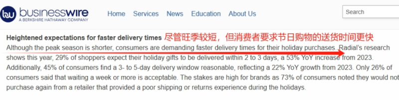 消費(fèi)者要求更快的送貨速度 圖源:businesswire