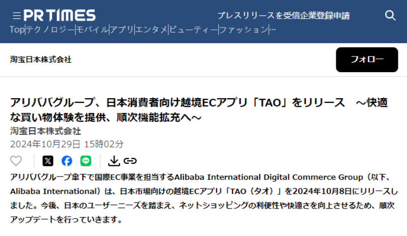 文章來源于互聯(lián)網(wǎng):阿里巴巴面向日本市場推出跨境電商應(yīng)用“TAO”