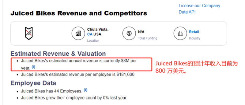 Juiced Bikes預計年收入為800萬美金 圖源:Growjo
