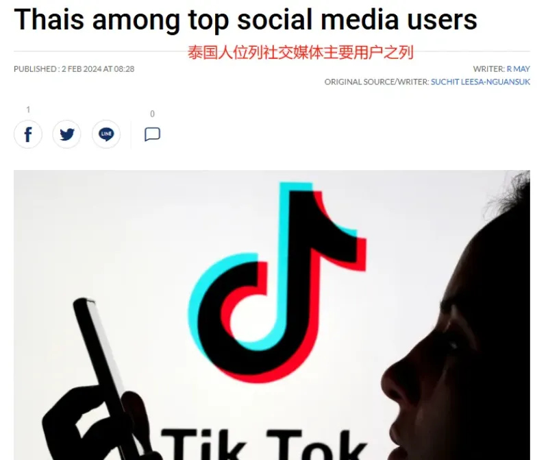根據DataReportal的報告,泰國人平均每天在TikTok、Facebook、YouTube等社交媒體上的使用時間為2.31小時,在全球排名第17位,有媒體評價泰國人已“躋身頂級社交媒體用戶之列”,這為發展直播電商創造了條件。