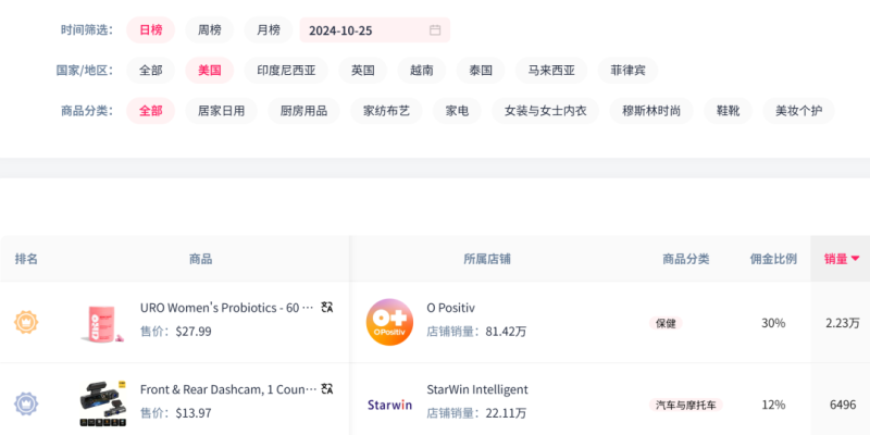 據(jù)相關(guān)數(shù)據(jù)顯示,截至目前,StarWin Intelligent品牌的這款行車(chē)記錄儀已經(jīng)售出近20萬(wàn)件,總GMV高達(dá)423.69萬(wàn)美元,位居汽車(chē)與摩托車(chē)類(lèi)目銷(xiāo)量榜榜首。光是在10月25日這一天,該產(chǎn)品就售出了6396單,沖上單日銷(xiāo)量榜第二的位置。