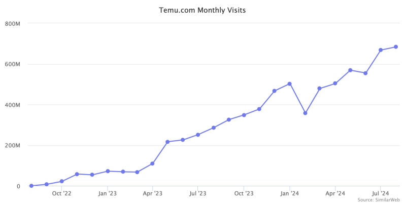 Temu月訪問量暴漲 圖源:Marketplace Pulse