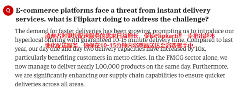 再比如說印度電商巨頭Flipkart,它正在給物流提速,押注快速送貨服務。今年年初,該巨頭在印度20個城市推出了當日達送貨服務。之后在6月,Flipkart又宣布要推出“超本地化服務”,僅需要10-15分鐘就能把商品送到消費者手中。