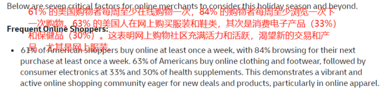 近段時間,國際快遞業巨頭DHL就公布了一份《美國在線購物者趨勢報告》,揭示了該國消費者在進行電商購物時的一些行為偏好,從而為賣家提供旺季參考。具體來看報告結果,首先就是美國人對網購的接受度已經很高了,超過六成(61%)的美國購物者每周都會進行網購,84%的消費者每周都會瀏覽下一次要購買的商品。而他們最熱衷網購的產品,就是服裝、鞋類、消費電子產品和保健品。