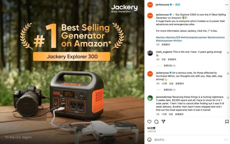 華寶新能發電機銷量第一 圖源:Instagram