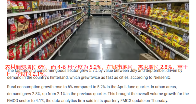 農村快消品銷量增速超過城市 圖源:ndtvprofit