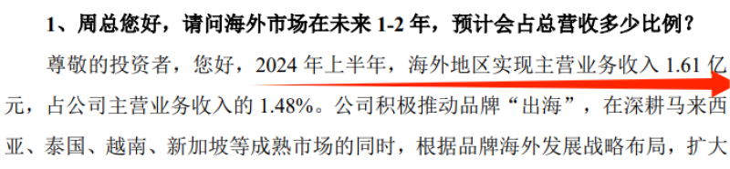 根據(jù)海瀾之家發(fā)布的2024半年報,今年前6個月,海瀾之家海外營收1.61億元,同比增長25.44%,跑贏公司營收大盤,占公司總營收比例為1.42%;海外門店總數(shù)達(dá)到68家,覆蓋馬來西亞、新加坡、泰國等東南亞核心市場。