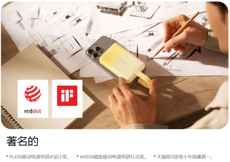 截至目前,羅馬仕的產品線已經拓展至移動電源、充電頭、便攜式儲能、車載充電器等10大品類,適用于家用、辦公、戶外等多個場景。憑借著出色的研發能力,羅馬仕的產品還斬獲了不少國際大獎,比如“iF設計獎”、“紅點設計大獎”。此外,羅馬仕還獲得了包括FCC、RoHS、IEC等多項認證,其實力可見一斑。