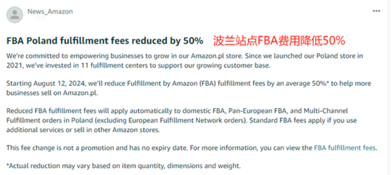 下調(diào)波蘭FBA配送費用 圖源:sellercentral.amazon