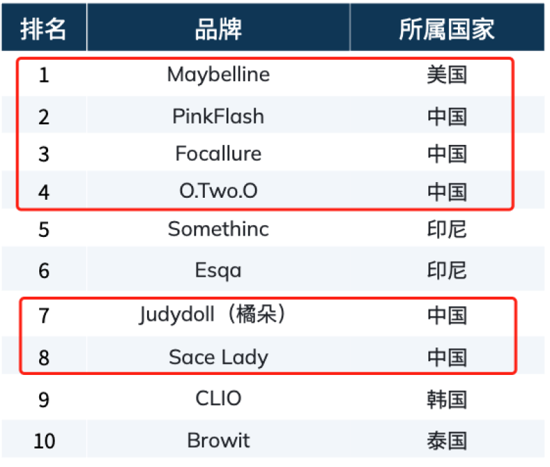 另一項來自TMOGroup的數據同樣印證了這一趨勢。今年6月,在Shopee和Lazada東南亞站,美妝產品的銷售額總計為2.1億美元;在當月的東南亞美妝暢銷品牌Top10中,有五個品牌都來自中國。