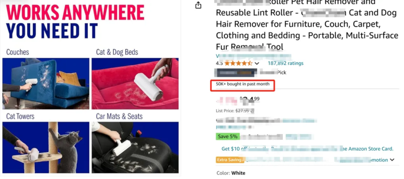比如在亞馬遜上,一款與涉案產(chǎn)品功能相似的寵物毛發(fā)除毛器,月銷量超過(guò)5萬(wàn)件,收獲評(píng)價(jià)18萬(wàn)條,市場(chǎng)反饋極其熱烈。
