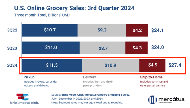美國在線雜貨市場銷售額增長 圖源:supermarketnews