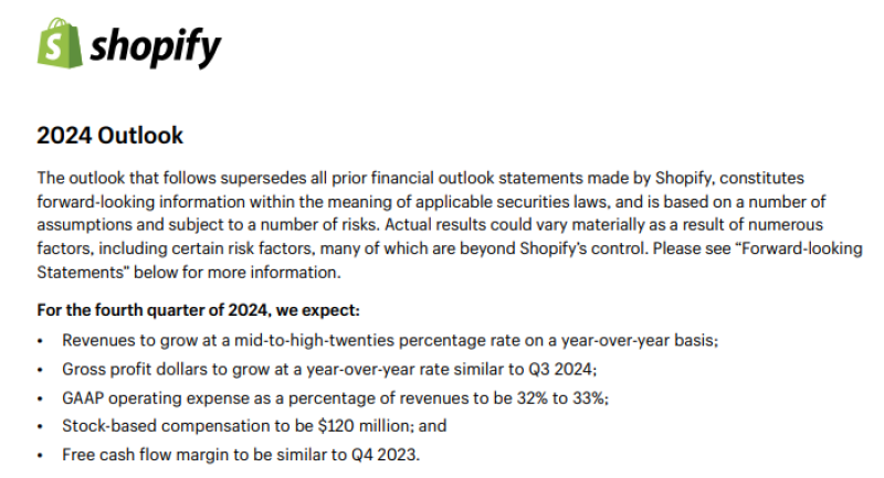 展望未來,Shopify預計2024年第四季度營收將同比增長25%-30%,毛利潤將以與2024年第三季度類似的同比增長率增長,GAAP營業費用占收入的百分比為32%-33%。