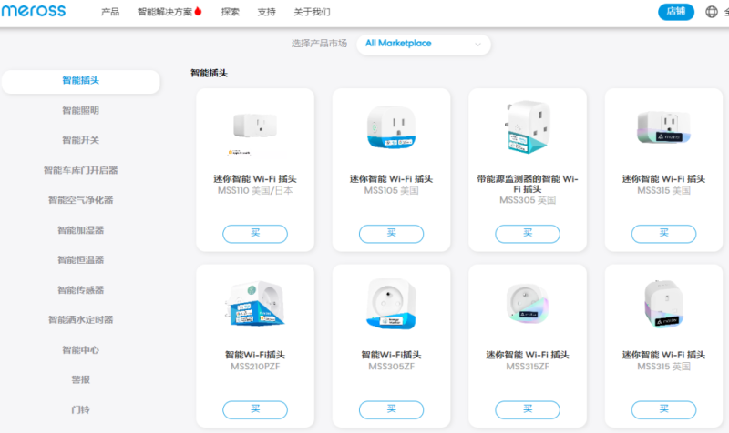 Meross產品線 圖源:Meross品牌官網