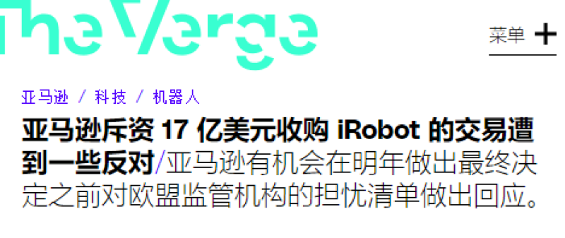 近兩年,iRobot的發(fā)展可謂是十分曲折。2022年8月,亞馬遜向iRobot伸出橄欖枝,想以約17億美元交易總價對其進行收購,但由于可能涉及大量家庭用戶數(shù)據(jù),在歐盟反壟斷監(jiān)管機構(gòu)的介入下,歷時長達16個月的亞馬遜與iRobot并購案還是以失敗告終。