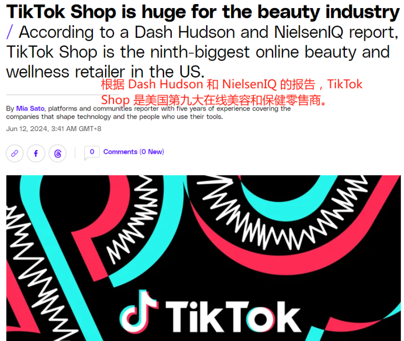 比如說在法國,今年上半年,美妝品牌以67%的占比,成為當地消費者在TikTok上引用最多的品牌。在美國,TikTok Shop更是成為美國第九大在線美容和保健零售商,同樣的榜單TikTok Shop在英國排第二。