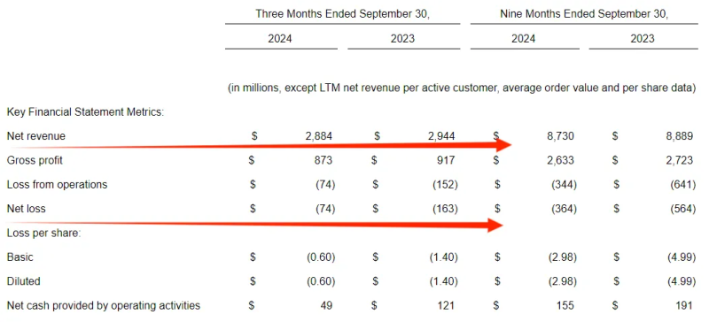 不久前,Wayfair發布最新財報數據,數據顯示,在今年第三季度,Wayfair總營收為29億美元,同比下降2%,其中美國市場營收25億美元,國際市場營收3.72億美元;凈虧損為7400萬美元。