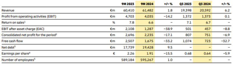 官方財(cái)報(bào)顯示,DHL去年總營收同比下降13.3%至818億歐元;息稅前利潤同比下降25%至63億歐元;扣除非控股權(quán)益后的綜合凈利潤跌得更狠,同比下降31%,金額為37億歐元。今年第一季度,DHL營收同比下降3.2%至202.51億歐元。不過自那之后,DHL的營收逐漸恢復(fù)了增長,第二季度小幅增長2.7%至206億歐元,第三季度也同比增長了6.2%。