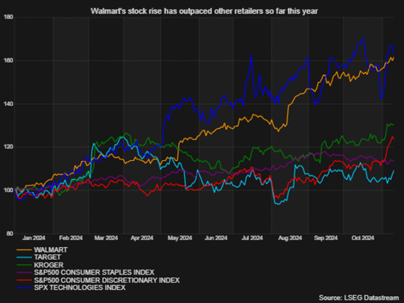 沃爾瑪股價高漲 圖源:LSEG Datastream