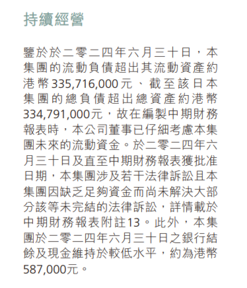 今年9月底,萬威電子母公司萬威集團發布中期業績報告,數據顯示,今年前6個月,萬威集團總營收5108.4萬港幣,毛利1743.6萬港幣。截至今年6月30日,集團總負債超出總資產約3.35億港幣,銀行結賬及現金約為58.7萬港幣。集團財務問題可以說是相當嚴重。