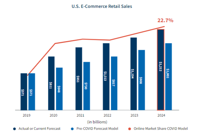 線上零售額大漲 圖源:DIGITAL COMMERCE360