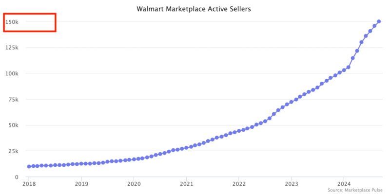 沃爾瑪活躍賣家總數持續增長 圖源:Marketplace Pulse