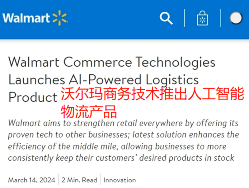 沃爾瑪推出AI物流產品 圖源:Walmart