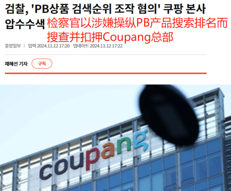 值得注意的是,最近又有消息稱Coupang因涉嫌利用算法操縱搜索排名,受到了該國檢察官的強制調查。詳細來看,KFTC指控Coupang在2019年2月至2023年7月期間,通過操縱搜索算法和調整搜索排名,提高平臺自營產品(PB產品)和直購產品的搜索排名,進而提高它們的曝光度和銷量。