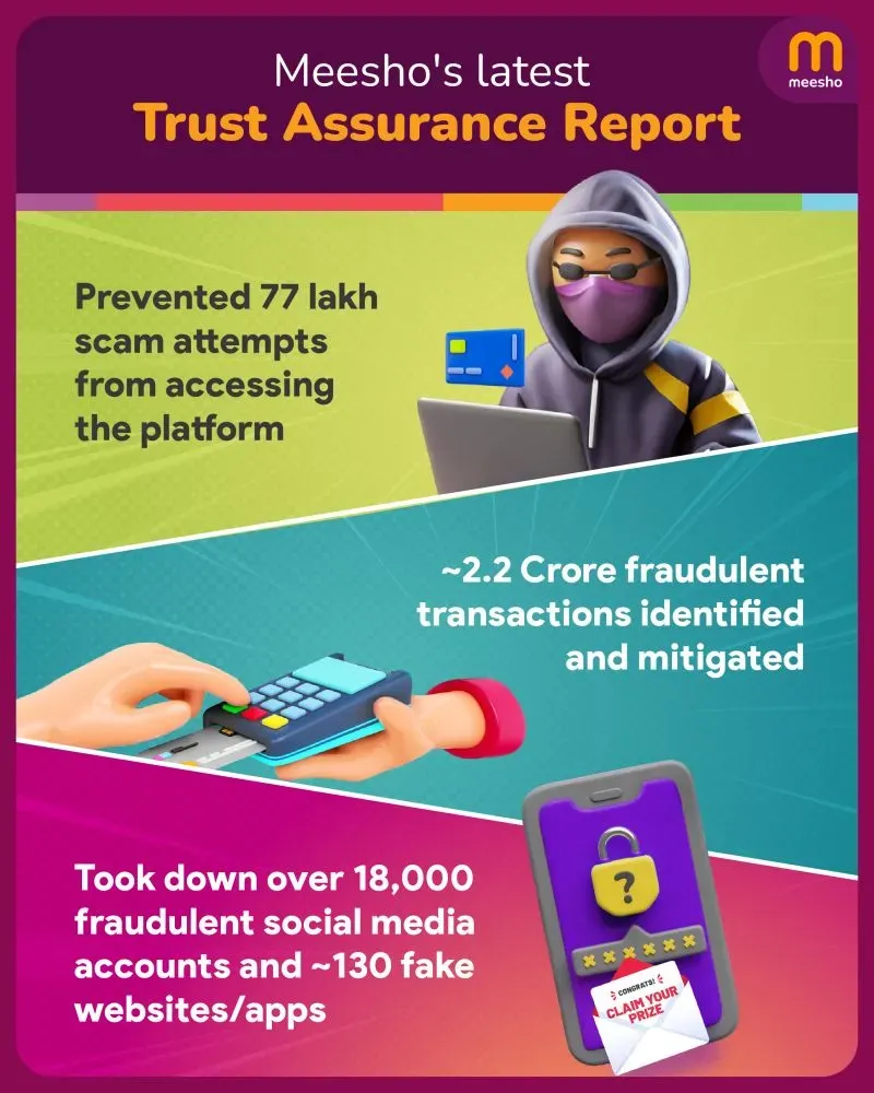 根據(jù)印度電商巨頭Meesho發(fā)布的《信任保證報(bào)告》,在過去一年里,平臺(tái)阻止了超2200萬筆可疑交易,并提起了12起訴訟。其團(tuán)隊(duì)還開發(fā)了分析模型、數(shù)據(jù)科學(xué)框架和計(jì)算邏輯,成功攔截了130萬個(gè)機(jī)器人訂單和770萬次詐騙訪問。