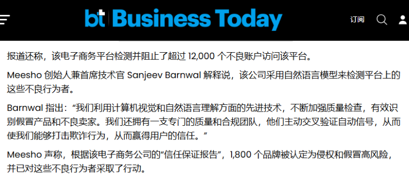事實(shí)上,Meesho在嚴(yán)打電商違規(guī)行為上的決心一直非常堅(jiān)定。2023年2月至8月份期間,Meesho成功檢測(cè)并阻止了超過12000個(gè)不良行為者賬戶訪問該平臺(tái),另外不合規(guī)產(chǎn)品的平臺(tái)瀏覽量也減少了80%。