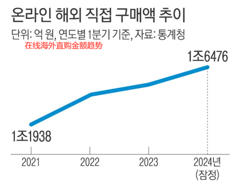 根據(jù)韓國統(tǒng)計(jì)廳最新發(fā)布的數(shù)據(jù),今年一季度,韓國海淘規(guī)模為1.65萬億韓元,其中9384億韓元來自中國,占比高達(dá)57%,創(chuàng)下歷史新高。