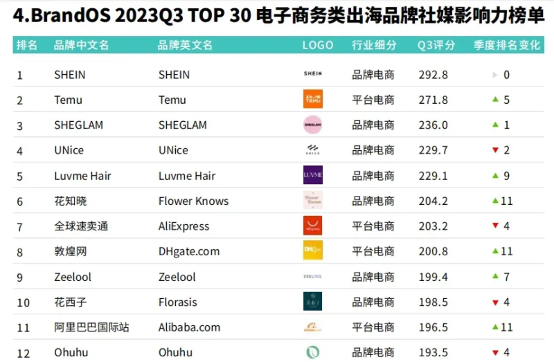 現如今Ohuhu在海外已經有了相當不錯的知名度,在OneSight此前發布的《2023Q3 TOP30電子商務類出海品牌社媒影響力榜單》中,可以發現Ohuhu排在第12位,倘若只看這個榜單中的品牌電商,Ohuhu則排在第8的位置,可以說是取得了不錯的成績。?