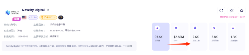 Novelty Digital小店累計銷售額已達260萬美元 圖源:Echotik