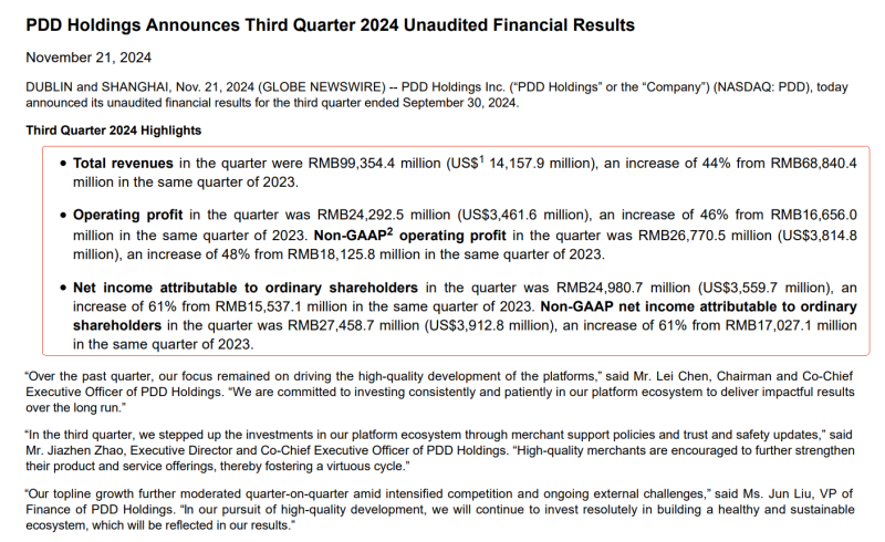 圖源:拼多多2024年第三季度財報