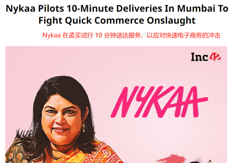 差不多是同一時(shí)間,印度時(shí)尚電商平臺(tái)Nykaa推出了一項(xiàng)名為“Nykaa Now”的快速送貨服務(wù),對(duì)于在特定郵政編碼區(qū)域購(gòu)買(mǎi)了化妝品的消費(fèi)者,Nykaa可以在3小時(shí)內(nèi)將商品送到他們手中。之后在10月,Nykaa又在孟買(mǎi)Borivali地區(qū)試點(diǎn)了一項(xiàng)10分鐘送貨服務(wù),以應(yīng)對(duì)Blinkit、Zepto、Swiggy Instamart等老牌快商務(wù)平臺(tái)的競(jìng)爭(zhēng)。