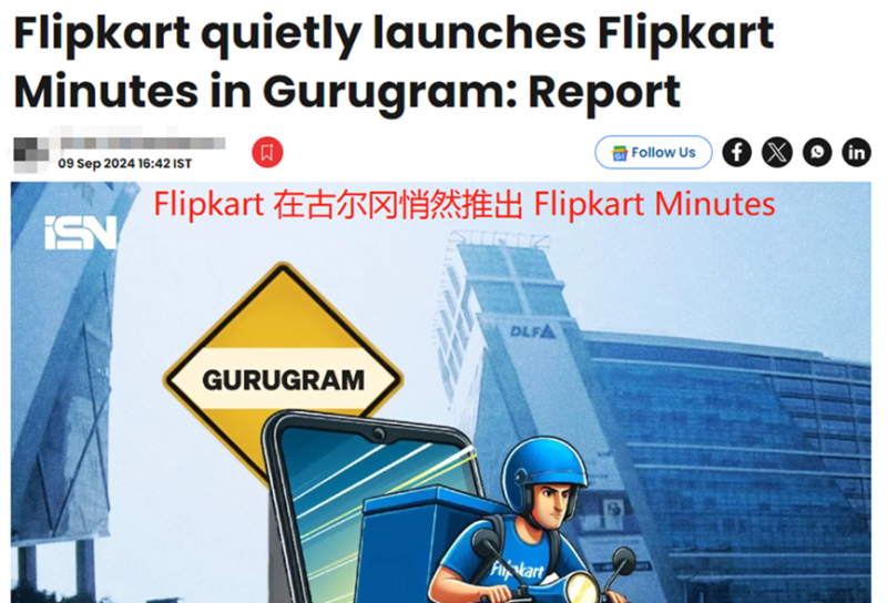 Flipkart在古爾岡地區(qū)推出Flipkart Minutes 圖源:indian startup news