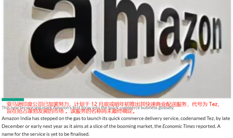 亞馬遜即將上線快商務(wù)服務(wù) 圖源:money control