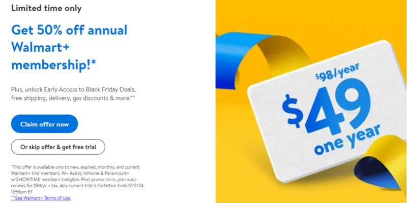 會(huì)員費(fèi)打五折 圖源:沃爾瑪