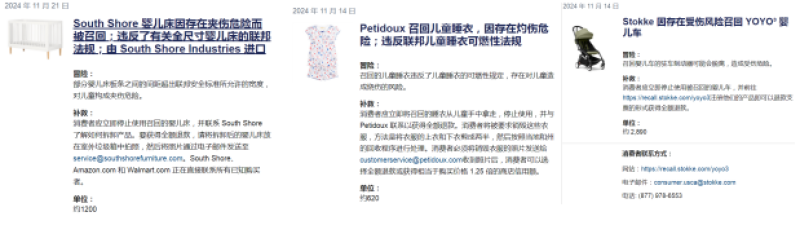 產品召回并非兒戲,因此賣家們務必重視起來。一旦產品出現安全隱患或質量問題,不僅會導致消費者流失,還可能引發法律風險和品牌危機。有一個特別值得一提的現象是,嬰幼兒和兒童以及老人、帶電產品等是CPSC召回列表里的常見身影,例如兒童睡衣、嬰兒床、嬰兒秋千、兒童水杯、老人扶手架等等。