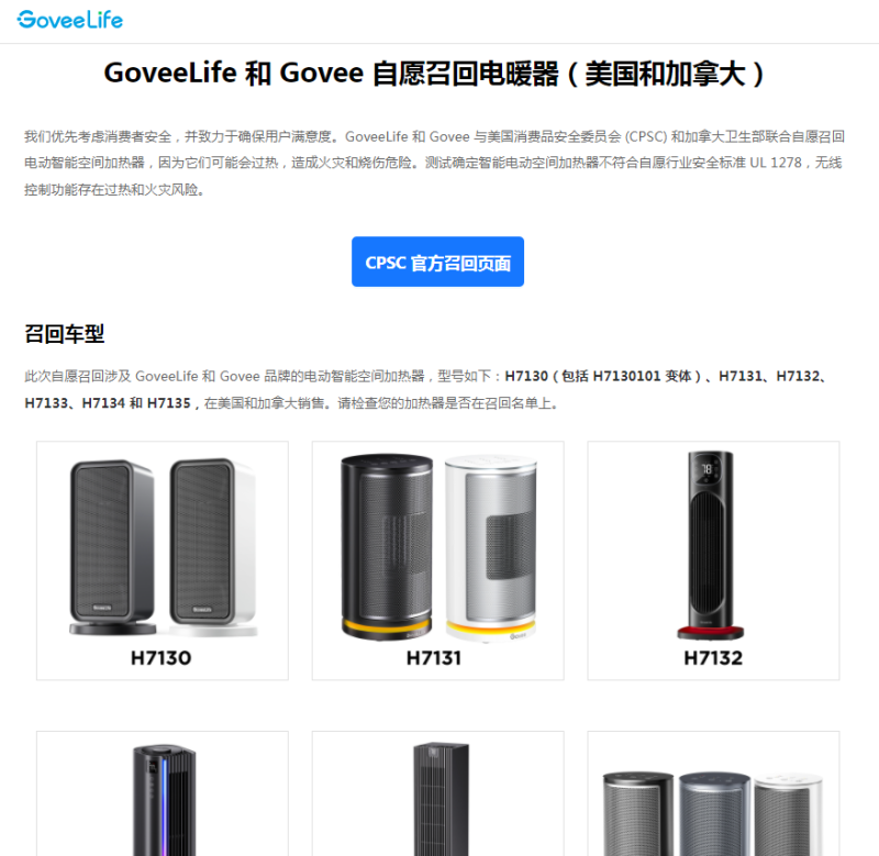 近日,跨境電商領域就發生了一起備受關注的產品召回事件。安克創新投資的智能家居品牌Govee,因產品存在安全隱患,被美國消費者產品安全委員會(CPSC)通知召回超過56萬臺產品。此次召回的產品主要涉及GoveeLife和Govee品牌的智能電暖器,原因是可能過熱并引發火災和燒傷風險。