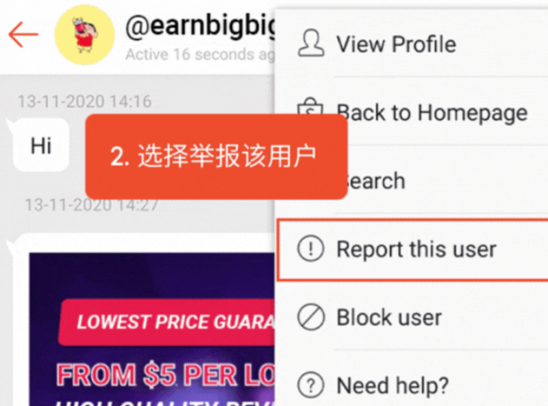 常見的刷單手段包括刷單服務提供商通過Shopee賣家聊天發送信息,承諾通過好評、關注者數量或產品點贊數來提高訂單數量;或是將其服務包裝成營銷服務,聲稱提供真實的訂單、評論、關注者或點贊。