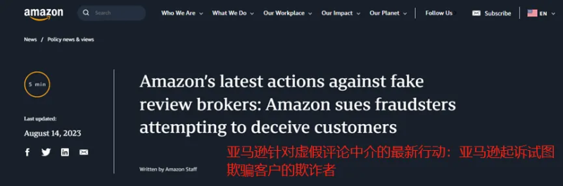 亞馬遜起訴刷單公司 圖源:About Amazon