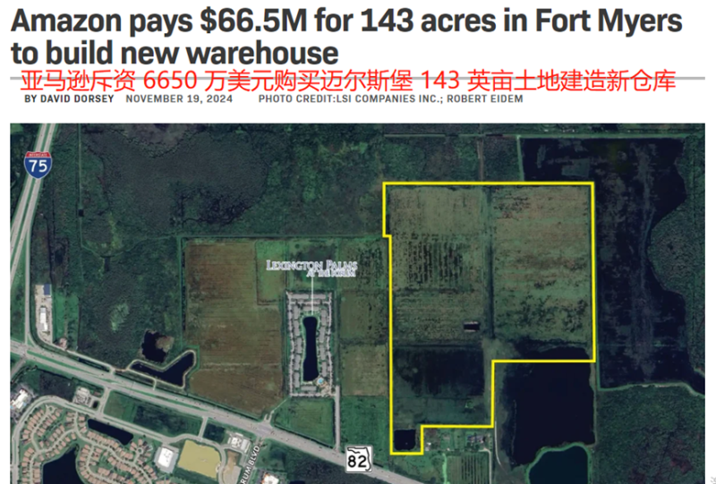 近日有消息稱,亞馬遜花費了6650萬美元巨資,在美國佛羅里達州的邁爾斯堡地區買下了一塊面積為143.2 英畝的土地,準備用來新建一個配送中心。